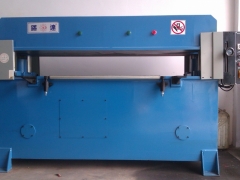 产品说明 四柱双缸油压裁断机系列 适用范围: 箱包、手袋、皮革、塑料、泡棉、布料、纸板、合成纤维等非金属物料成型裁断。 特点 1.四柱式双油缸机构设计,刚性佳,能有效确保机械之平面精度,裁断面的任何位置均 保持稳定之裁断力输出。 2.间断式单次行程操作、双手按钮开动,设有紧急停止装置,确保操作安全。 3.刀模设定简捷、准确、裁断力高速容易。 4.自动润滑系统,可确保机器精密度与提高机器耐用度